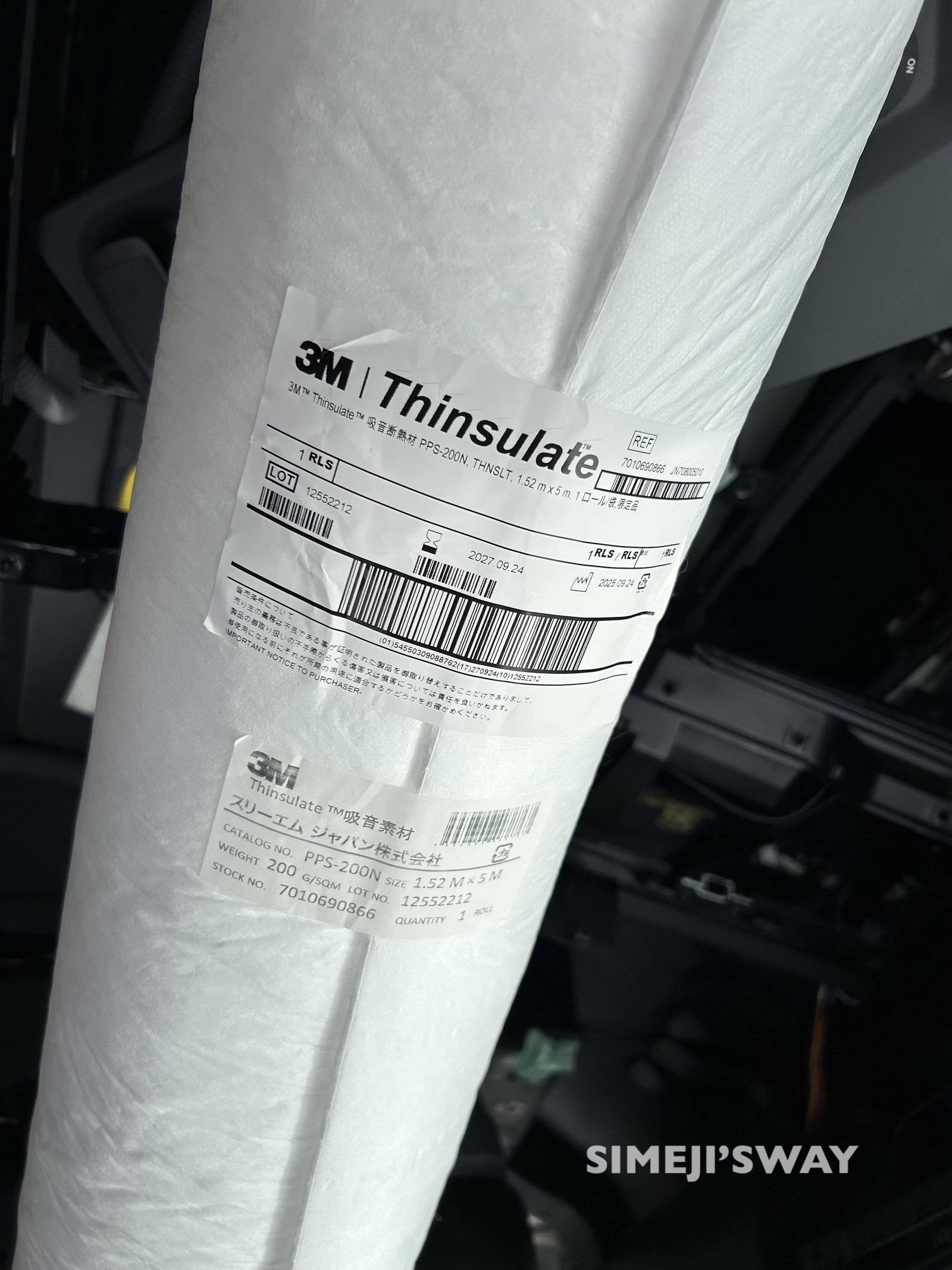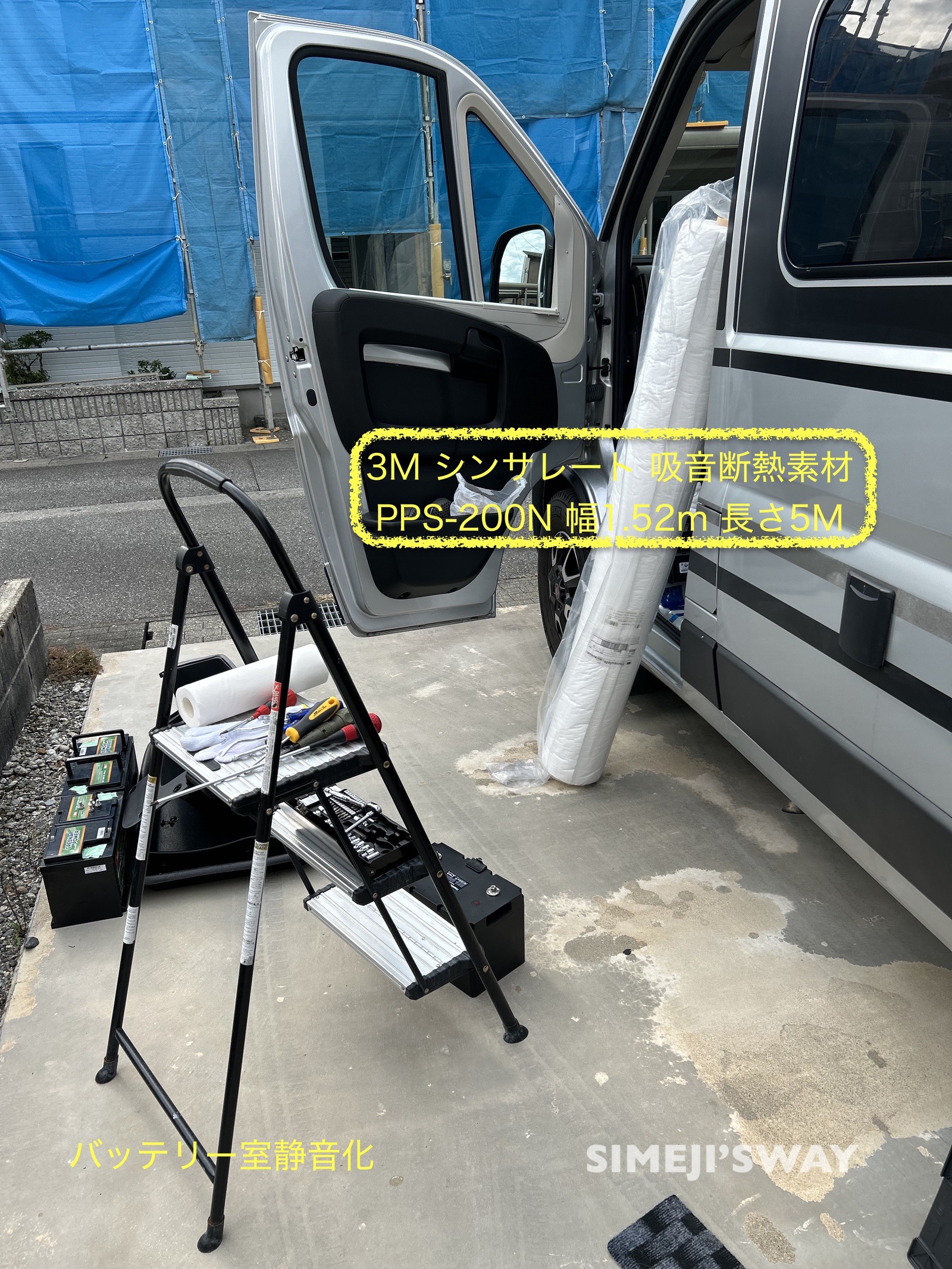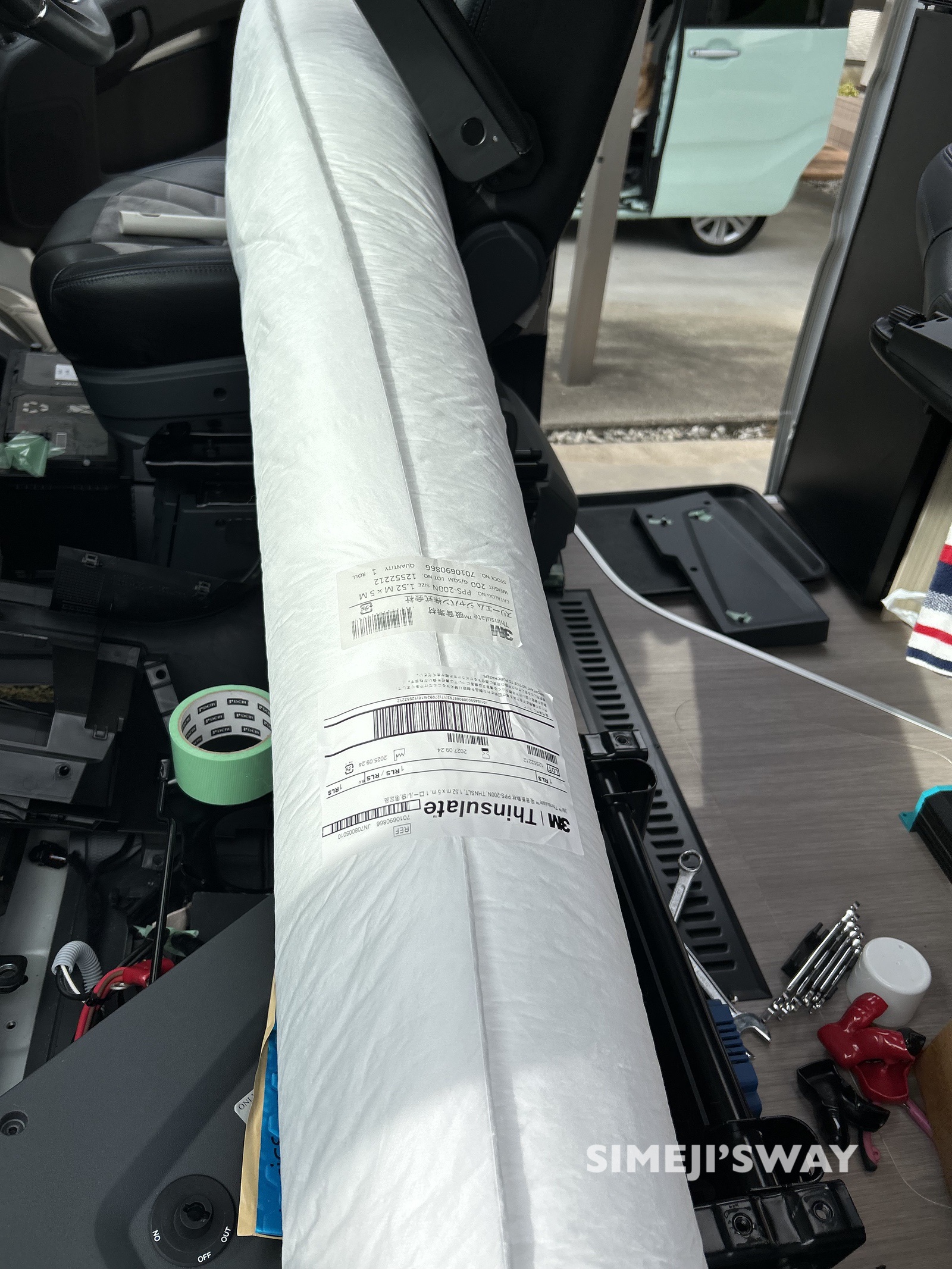 車内を静かにするために3Mのシンサレートを購入しました。左右のドア、スライドドア、リアドアなど広範囲に施工するために5メートルの商品を購入しました。 最終的には少し足りませんでしたけれども。
